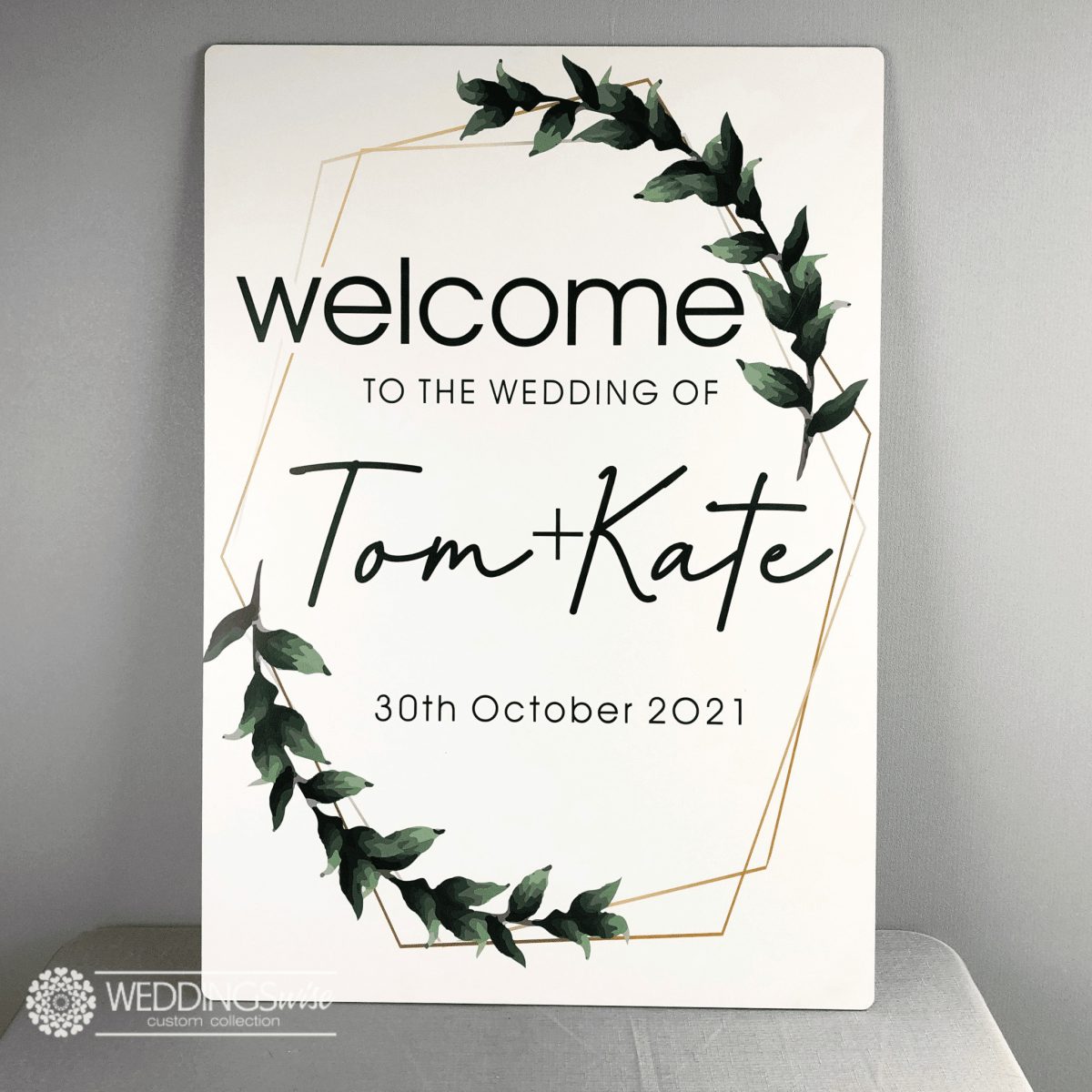 Large Wreath Portrait Printed Welcome Sign, perfect for a gorgeous wedding day and a lovely way to welcome your guests as they arrive. This 600 x 850 mm sign custom cut 6mm board is laminated with a digital print & personalised with your names and special date. Placed at the entrance table of your wedding ceremony, easel or reception area. It can also be used as an accent piece in your home as a keepsake of your special day.