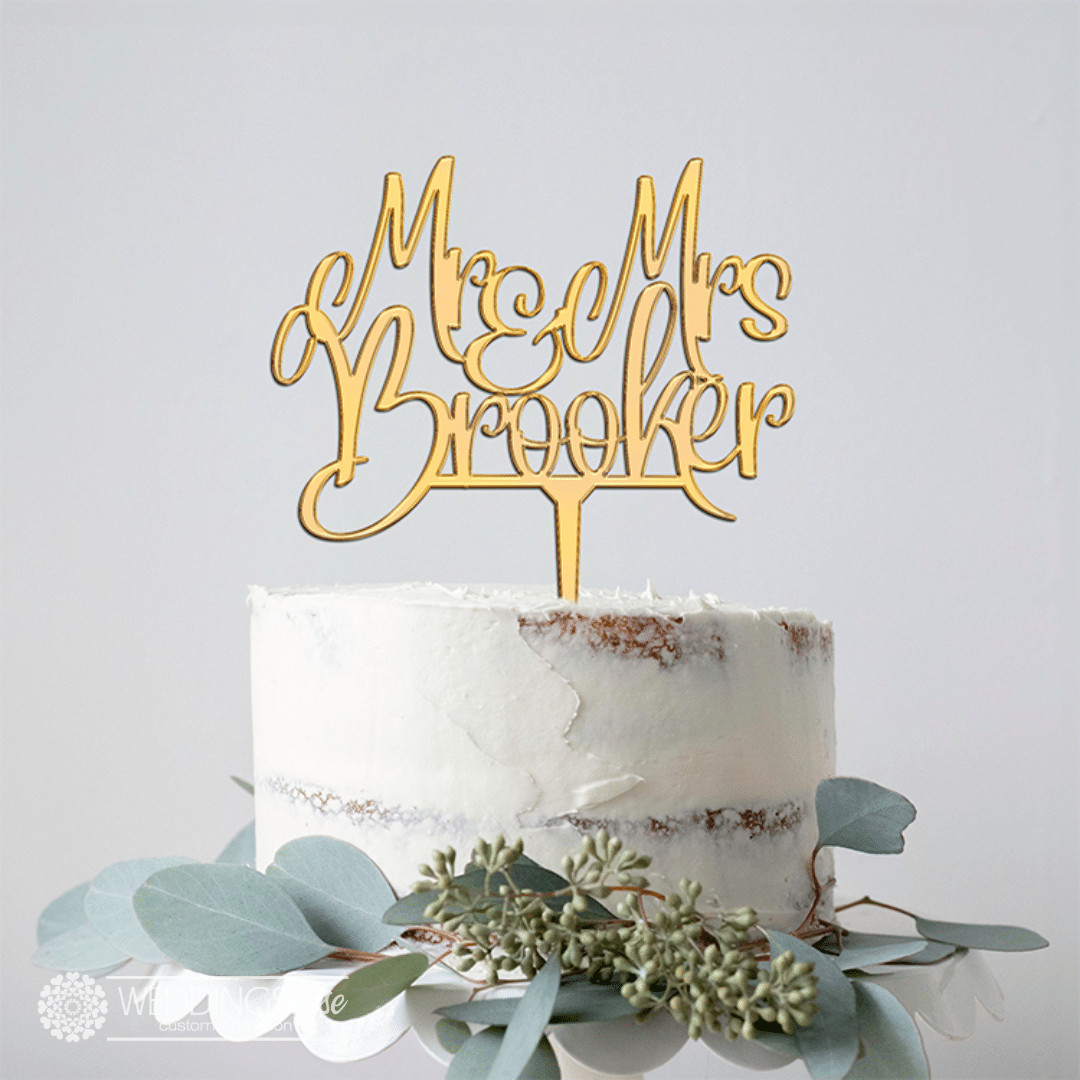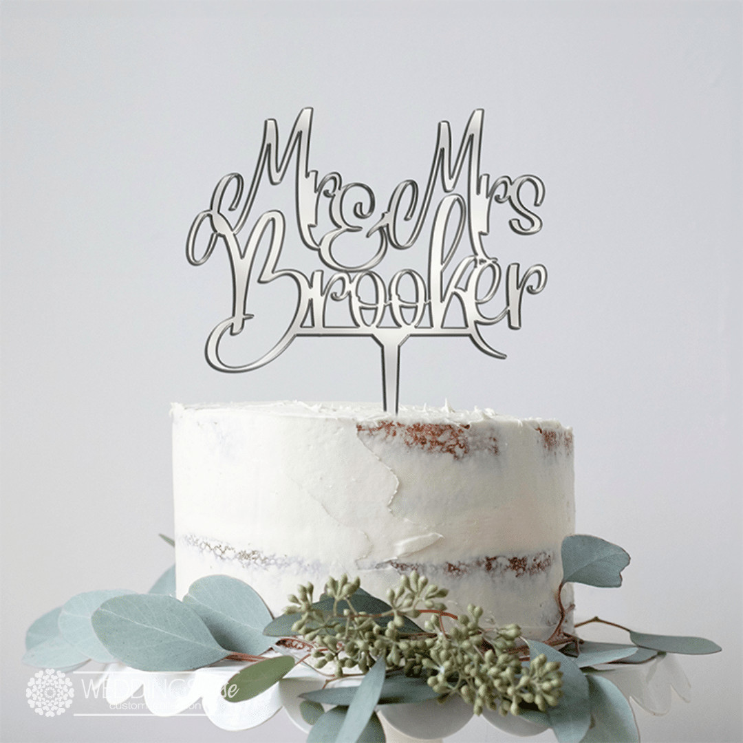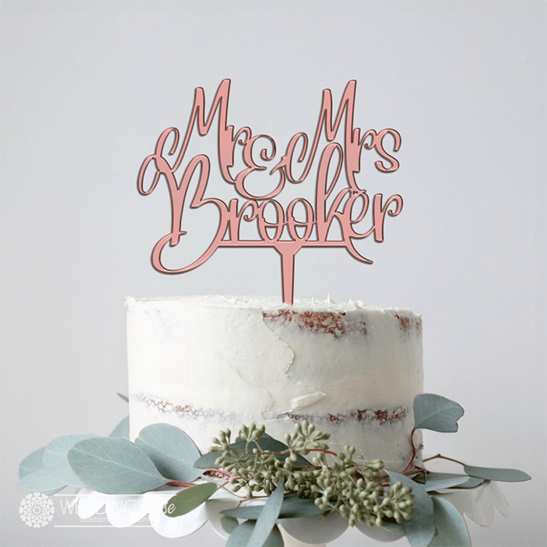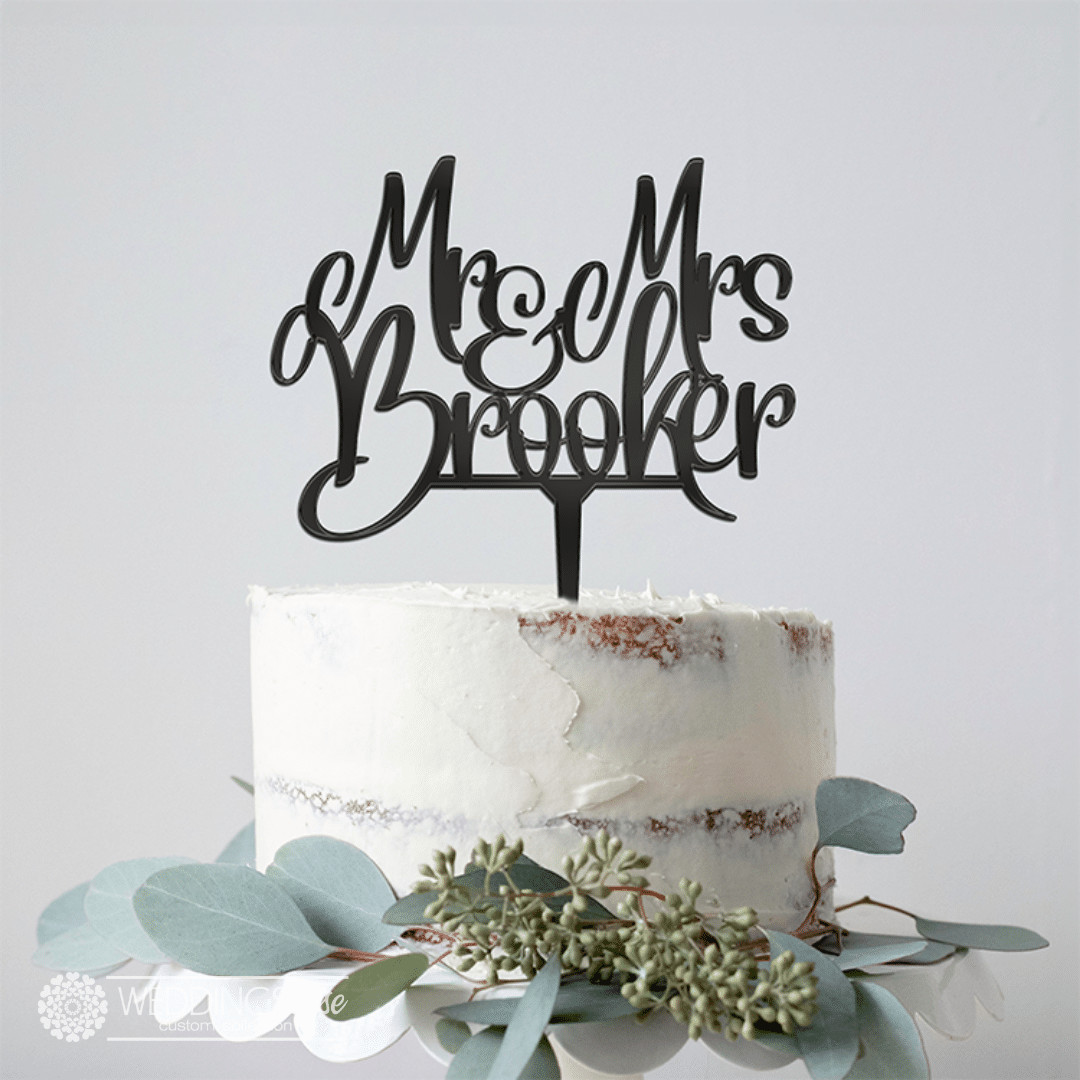 “Mr and Mrs Surname” Script -Personlised Cake Topper