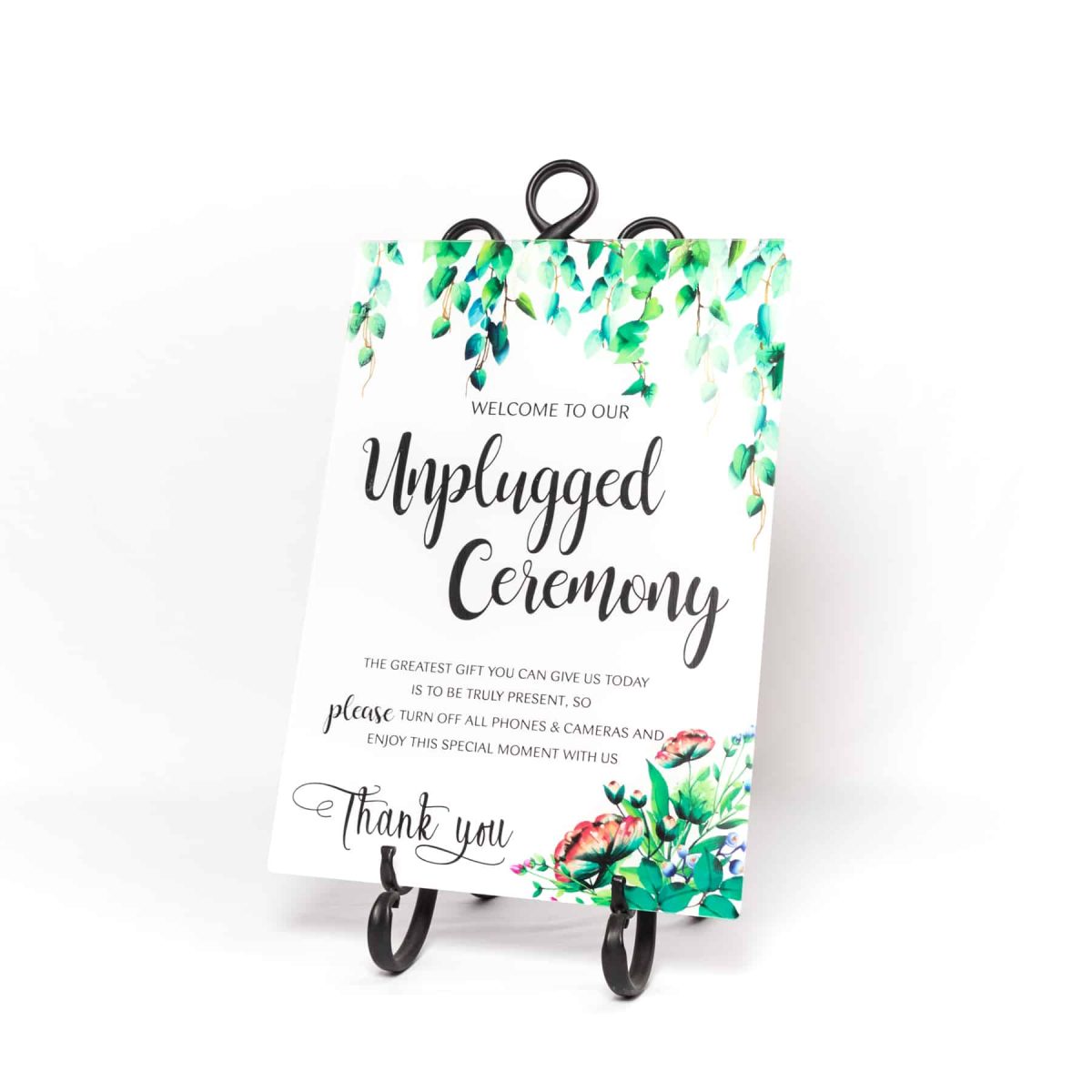 “Unplugged” Sign digitally printed acrylic sign with floral design